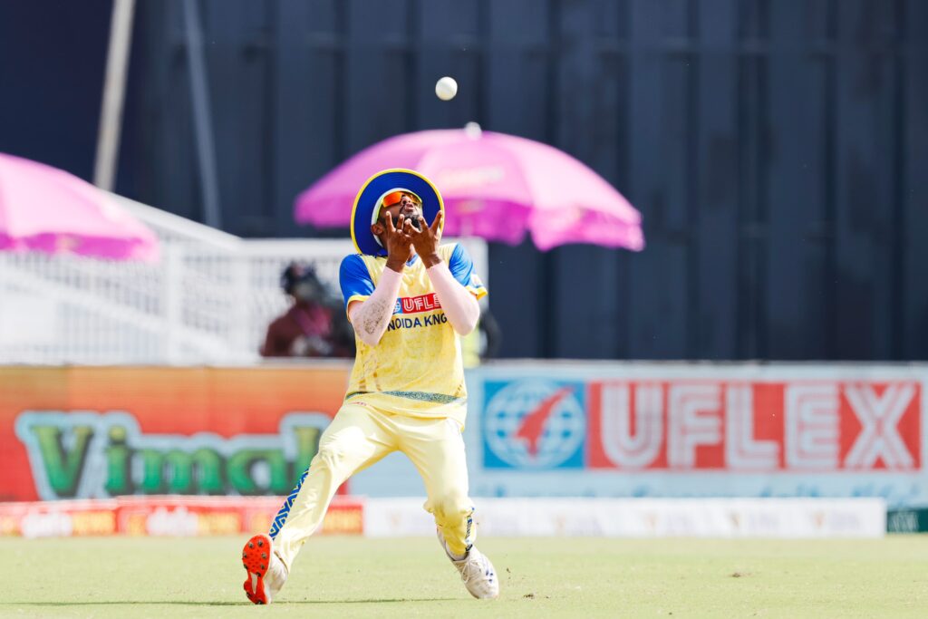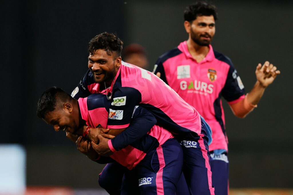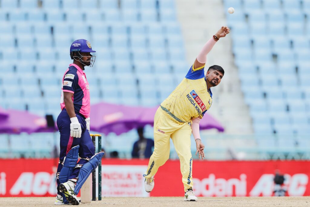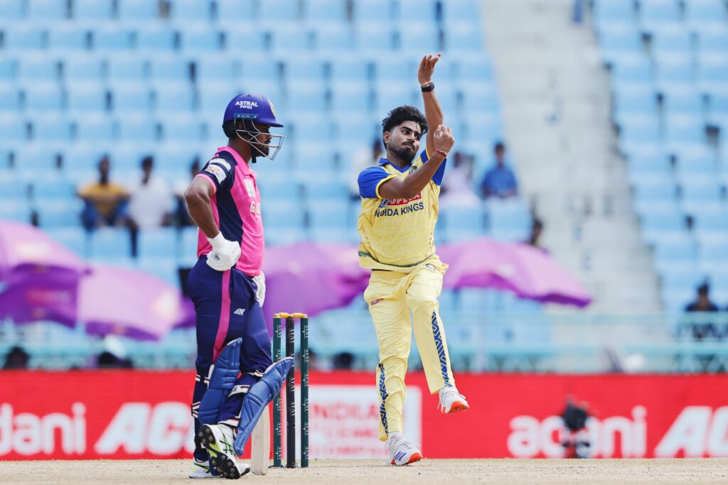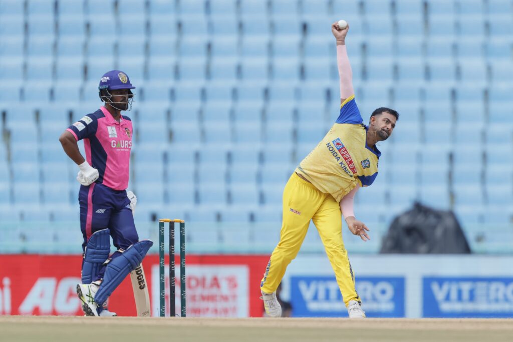 लखनऊ, 20 अगस्त 2025। गोर गोरखपुर लायंस ने एएनएएक्स यूपीटी20 (विवश्व समुद्र द्वारा प्रायोजित) में अपनी पहली जीत दर्ज करते हुए नोएडा किंग्स को 14 रन से हराया। इकाना क्रिकेट स्टेडियम में खेले गए इस सीज़न के छठे मुकाबले में गोरखपुर ने पहले बल्लेबाज़ी करते हुए 20 ओवर में 7 विकेट पर 186 रन बनाए। जवाब में नोएडा की टीम 19.3 ओवर में 172 रन पर सिमट गई।गोरखपुर की जीत के नायक रहे तेज़ गेंदबाज़ वसु वाट्स, जिन्होंने 4 विकेट झटके और नोएडा की मज़बूत वापसी की कोशिशों पर पानी फेर दिया।पहले बल्लेबाज़ी करते हुए गोरखपुर ने तेज़ शुरुआत की। हालांकि लगातार विकेट गिरते रहे लेकिन अक्षदीप नाथ (42 रन) ने पारी को संभाला। अंत में हरदीप सिंह (30) और शिवम शर्मा की साझेदारी ने स्कोर को मज़बूत 186 तक पहुँचा दिया।नोएडा ने लक्ष्य का पीछा करते हुए शुरुआत में ही कप्तान शिवम चौधरी को खो दिया। 63/4 की मुश्किल स्थिति के बाद रवि सिंह (30) और प्रियंशु पांडे (53, 6 छक्के) ने 67 रन की धमाकेदार साझेदारी कर मैच को रोमांचक बना दिया। लेकिन दोनों के लगातार आउट होते ही नोएडा की उम्मीदें भी समाप्त हो गईं।गोरखपुर के लिए गेंदबाज़ी में वसु वाट्स (4/32) सबसे सफल रहे, जबकि शिवम शर्मा ने भी 2 विकेट झटके।संक्षिप्त स्कोरकार्ड:गोर गोरखपुर लायंस – 186/7 (अक्षदीप नाथ 42, हरदीप सिंह 30; जस्मेर धनखड़ 2/38, युवराज सिंह 2/43)नोएडा किंग्स – 172 ऑल आउट (प्रियंशु पांडे 53, रवि सिंह 30; वसु वाट्स 4/32, शिवम शर्मा 2/16)परिणाम: गोर गोरखपुर लायंस 14 रन से विजयी।मैन ऑफ द मैच: वसु वाट्स।