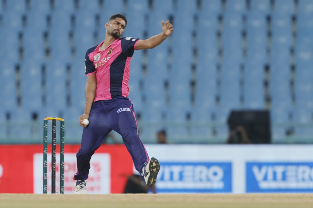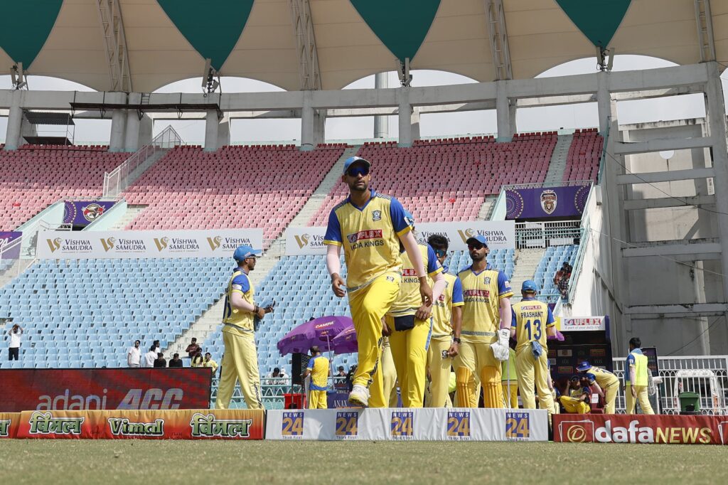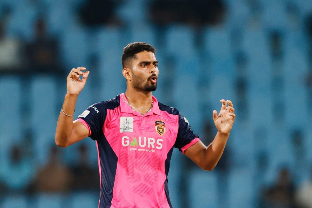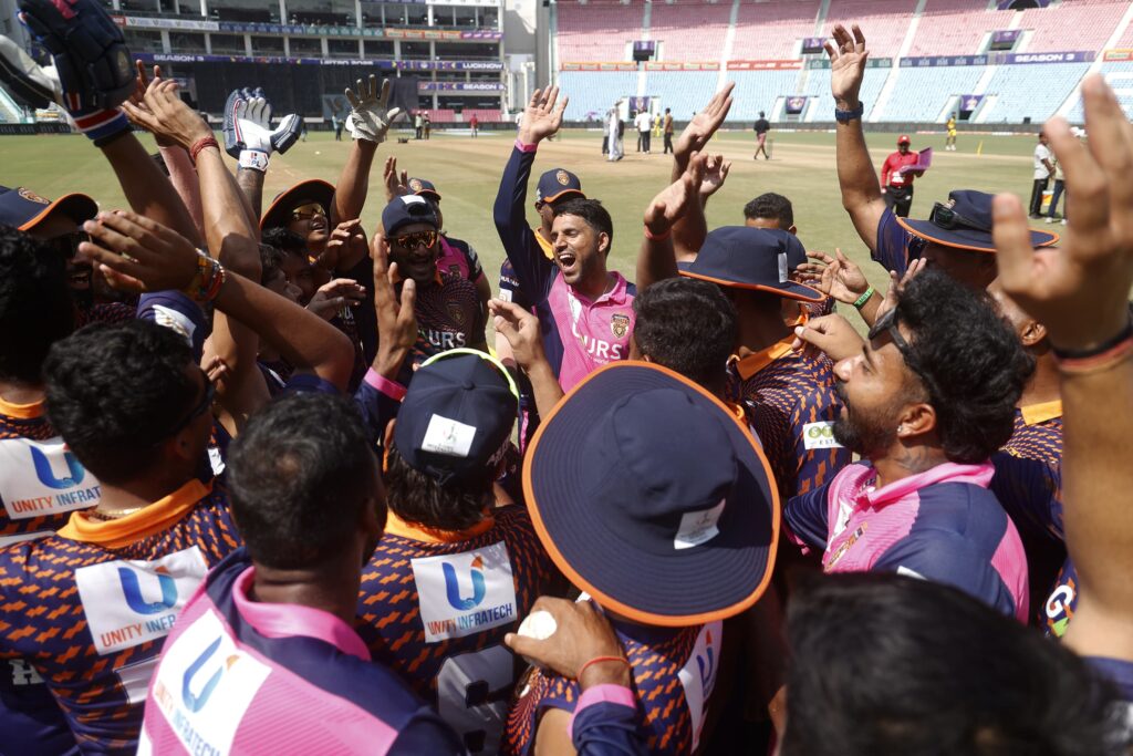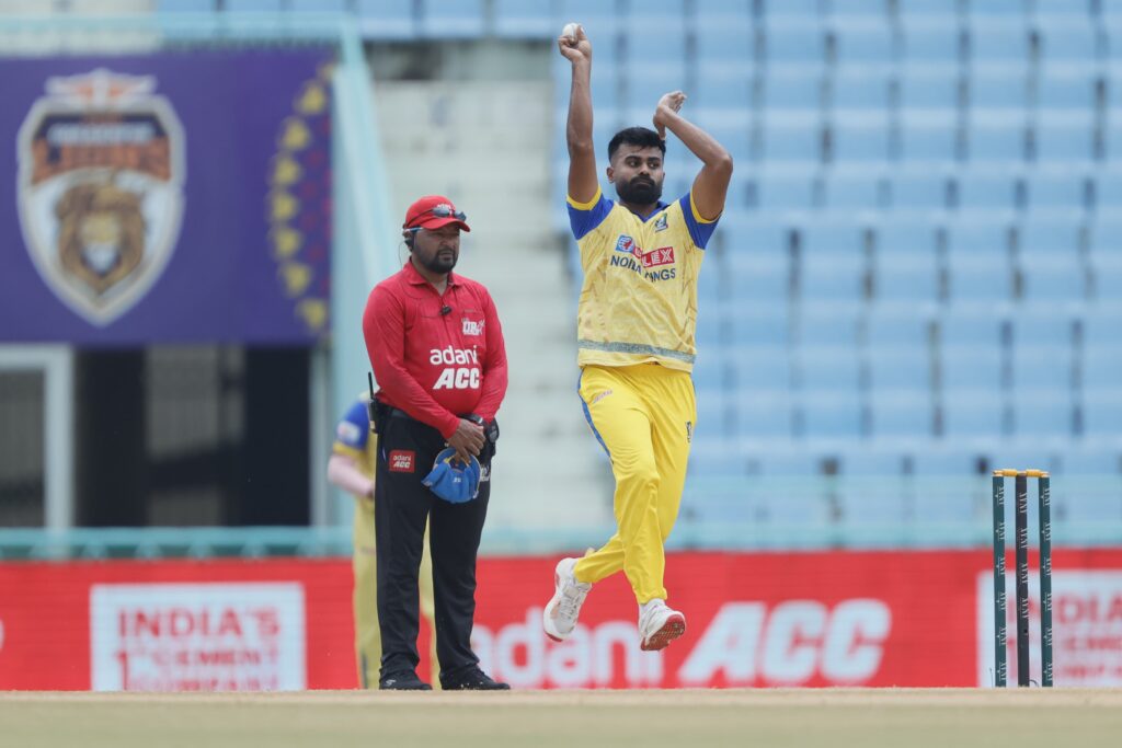 लखनऊ, 20 अगस्त 2025। गोर गोरखपुर लायंस ने एएनएएक्स यूपीटी20 (विवश्व समुद्र द्वारा प्रायोजित) में अपनी पहली जीत दर्ज करते हुए नोएडा किंग्स को 14 रन से हराया। इकाना क्रिकेट स्टेडियम में खेले गए इस सीज़न के छठे मुकाबले में गोरखपुर ने पहले बल्लेबाज़ी करते हुए 20 ओवर में 7 विकेट पर 186 रन बनाए। जवाब में नोएडा की टीम 19.3 ओवर में 172 रन पर सिमट गई।गोरखपुर की जीत के नायक रहे तेज़ गेंदबाज़ वसु वाट्स, जिन्होंने 4 विकेट झटके और नोएडा की मज़बूत वापसी की कोशिशों पर पानी फेर दिया।पहले बल्लेबाज़ी करते हुए गोरखपुर ने तेज़ शुरुआत की। हालांकि लगातार विकेट गिरते रहे लेकिन अक्षदीप नाथ (42 रन) ने पारी को संभाला। अंत में हरदीप सिंह (30) और शिवम शर्मा की साझेदारी ने स्कोर को मज़बूत 186 तक पहुँचा दिया।नोएडा ने लक्ष्य का पीछा करते हुए शुरुआत में ही कप्तान शिवम चौधरी को खो दिया। 63/4 की मुश्किल स्थिति के बाद रवि सिंह (30) और प्रियंशु पांडे (53, 6 छक्के) ने 67 रन की धमाकेदार साझेदारी कर मैच को रोमांचक बना दिया। लेकिन दोनों के लगातार आउट होते ही नोएडा की उम्मीदें भी समाप्त हो गईं।गोरखपुर के लिए गेंदबाज़ी में वसु वाट्स (4/32) सबसे सफल रहे, जबकि शिवम शर्मा ने भी 2 विकेट झटके।संक्षिप्त स्कोरकार्ड:गोर गोरखपुर लायंस – 186/7 (अक्षदीप नाथ 42, हरदीप सिंह 30; जस्मेर धनखड़ 2/38, युवराज सिंह 2/43)नोएडा किंग्स – 172 ऑल आउट (प्रियंशु पांडे 53, रवि सिंह 30; वसु वाट्स 4/32, शिवम शर्मा 2/16)परिणाम: गोर गोरखपुर लायंस 14 रन से विजयी।मैन ऑफ द मैच: वसु वाट्स।