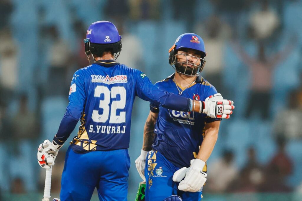 - मेरठ मैवरिक्स – 168/4, 18.5 ओवर (रिंकू सिंह 108*, सहाब युवराज 22*; प्रिंस यादव 1/24, विजय यादव 1/29)