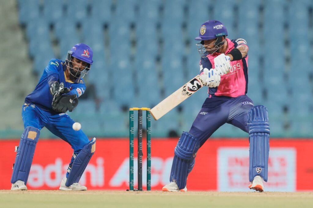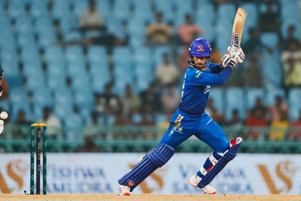 परिणाम: मेरठ मैवरिक्स ने 6 विकेट से जीत दर्ज की।