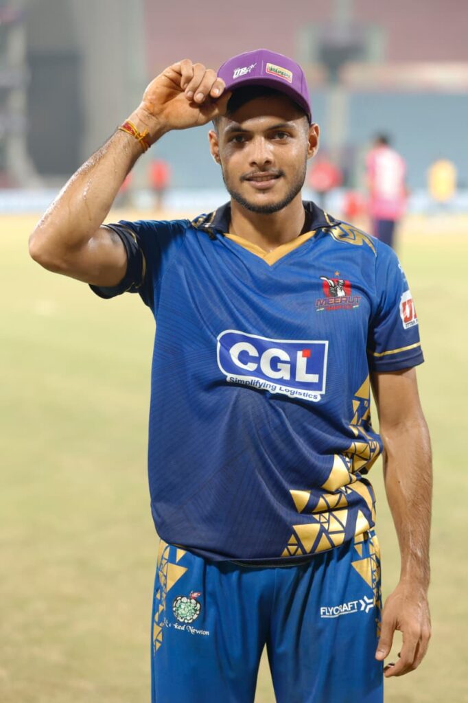 168 रनों के लक्ष्य का पीछा करते हुए मेरठ की शुरुआत बेहद निराशाजनक रही। टीम ने शुरुआती 8 ओवरों में सिर्फ 38 रन बनाए और अपने चार अहम विकेट खो दिए। स्वस्तिक चिकार और मधव कौशिक जल्द पवेलियन लौट गए, जबकि ऋतुराज शर्मा के आउट होने से टीम संकट में थी।