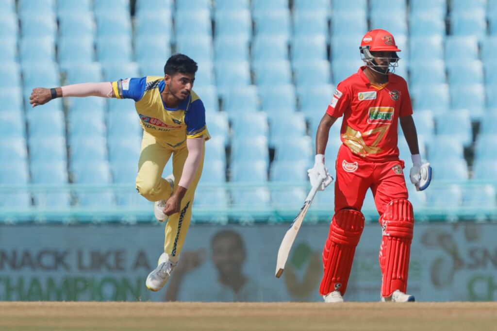 नोएडा के लिए गेंदबाज़ नमन तिवारी सबसे बड़े नायक साबित हुए। उन्होंने अपनी धारदार बाएं हाथ की तेज़ गेंदबाज़ी से कानपुर के शीर्ष क्रम को ध्वस्त कर दिया और 22 रन देकर 4 विकेट झटके। कुणाल त्यागी ने भी 3 विकेट लेकर शानदार सहयोग दिया। बल्लेबाज़ी में भले ही कोई बड़ा स्कोर न रहा हो, लेकिन राहुल राजपाल (21 रन) और कर्ण शर्मा (नाबाद 13 रन) ने निर्णायक योगदान दिया।कानपुर के लिए फ़ैज़ अहमद और बॉबी यादव ने संघर्ष किया, जबकि गेंदबाज़ी में राहुल शर्मा (3/12) और शुभम मिश्रा (2/21) ने टीम को अंत तक लड़ाया, लेकिन जीत दिलाने के लिए रन पर्याप्त नहीं थे।—