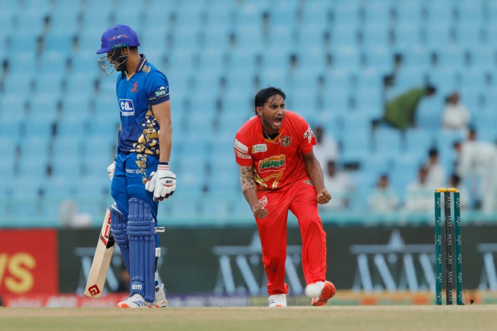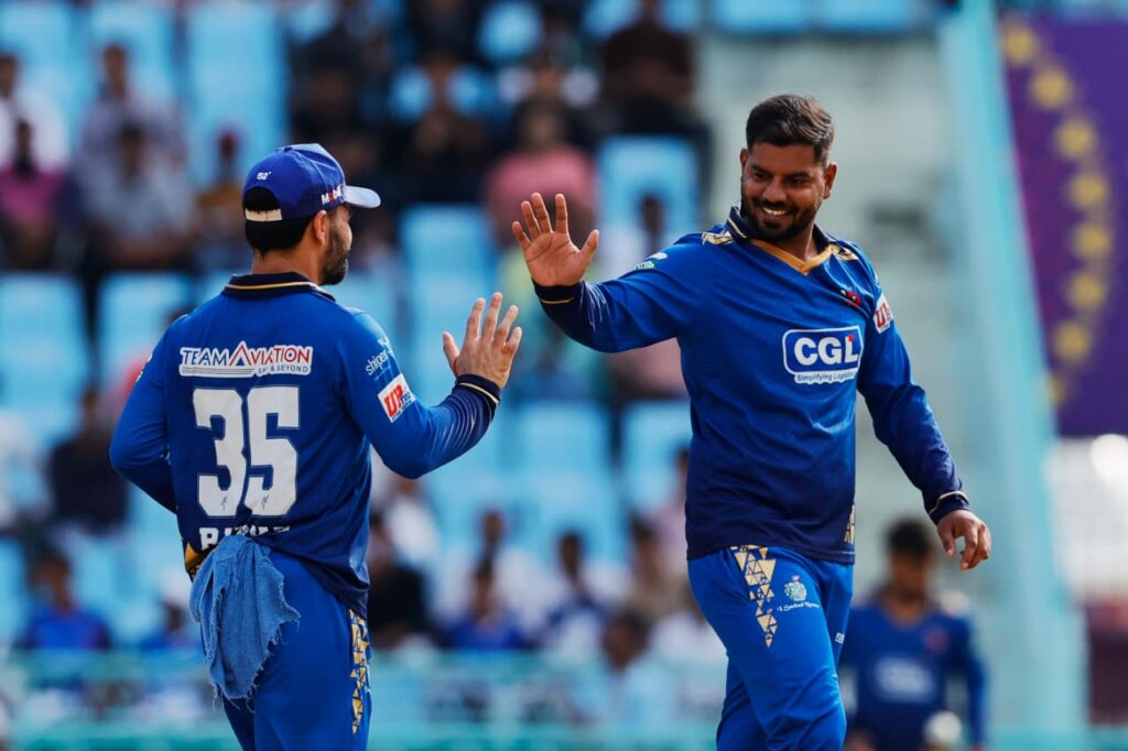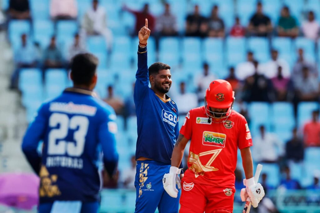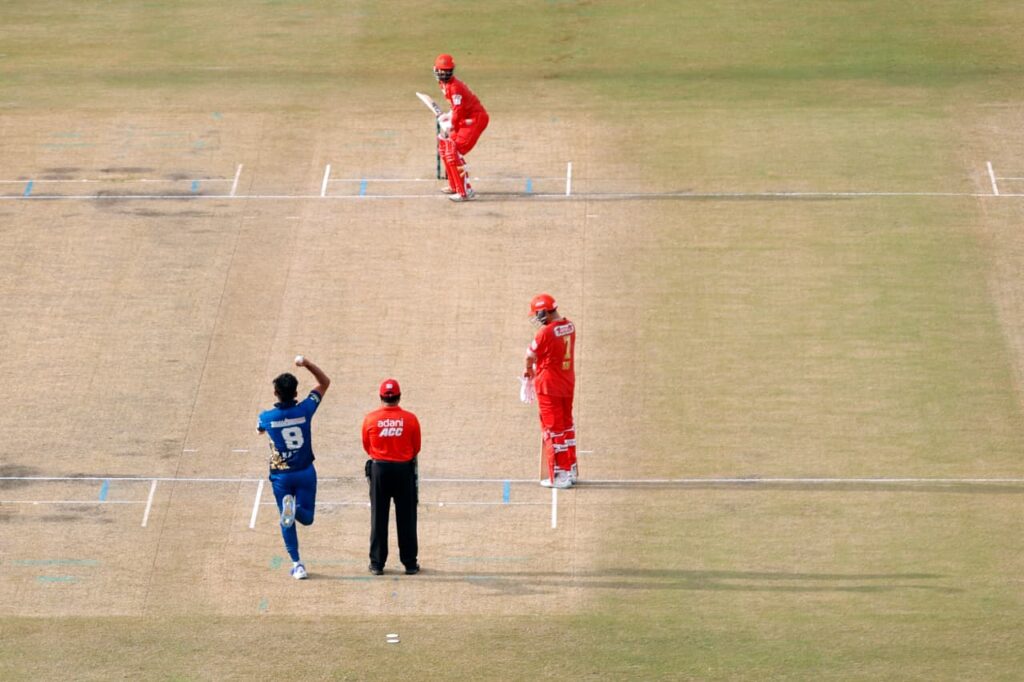 आक़िब ख़ान ने पावरप्ले में तीन ओवर डाले और सिर्फ़ 5 रन दिए। उन्होंने एक मेडन भी डाला और रितुराज शर्मा को स्लिप में कैच करवाया। वहीं विनीत पंवार ने अक्षय दुबे को शून्य पर चलता किया।