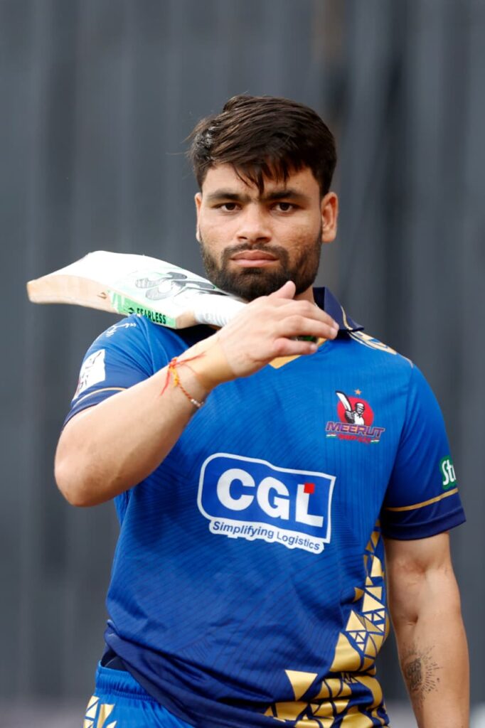 मेरठ के आक्रामक बल्लेबाज़ स्वस्तिक चिकारा (नाबाद 29) और माधव कौशिक ने पारी को संभालने की कोशिश की, लेकिन रन गति पर काबू नहीं पाया जा सका। आठवें ओवर में ही तेज़ बारिश शुरू हो गई और मैच आगे नहीं खेला जा सका। उस समय मेरठ का स्कोर 41/2 था और डीएलएस के अनुसार वे लक्ष्य से 14 रन पीछे थे।