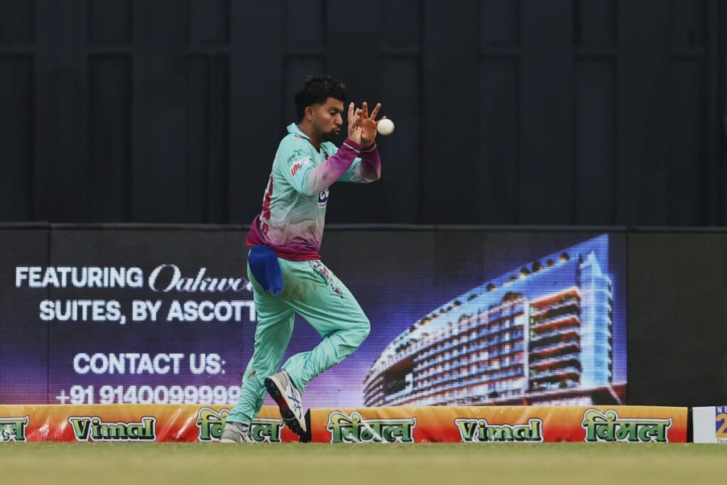- स्वस्तिक चिकारा (31 गेंदों में 55 रन) ने पारी की धमाकेदार शुरुआत की।