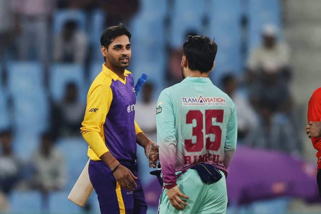 - ज़ीशान अंसारी (3/23) और कार्तिक त्यागी (3/25) ने मध्य और निचले क्रम को झकझोर कर रख दिया।