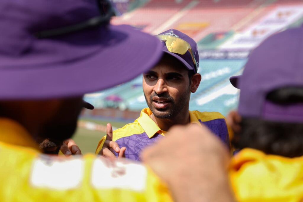 लखनऊ, 27 अगस्त 2025: भारत रत्न श्री अटल बिहारी वाजपेयी इकाना क्रिकेट स्टेडियम में खेले गए एएनएएक्स यूपीटी20 2025 (ANAX UPT20 powered by Vishwa Samudra) के 20वें मुकाबले में मेरठ मैवरिक्स ने लखनऊ फाल्कन्स को 93 रनों से हराकर जोरदार जीत दर्ज की। इस जीत के साथ मेरठ ने अंकतालिका में आठ अंकों के साथ दूसरा स्थान और मजबूत किया, वहीं लखनऊ सात मैचों से छह अंकों पर ही अटका रहा।