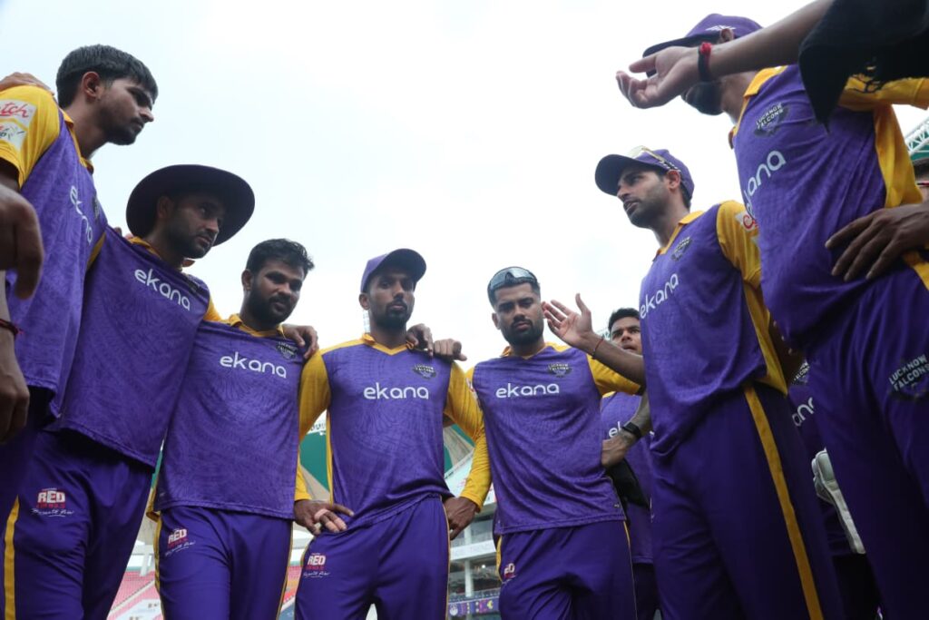 टॉस जीतकर पहले बल्लेबाज़ी करने उतरी लखनऊ फाल्कन्स ने पावरप्ले में जोरदार शुरुआत की और शुरुआती छह ओवरों में 59 रन बना डाले। आराध्या यादव (59 रन, 44 गेंद) और मो. सैफ़ (43 रन) ने दूसरे विकेट के लिए 59 रन जोड़ते हुए ठोस नींव रखी।