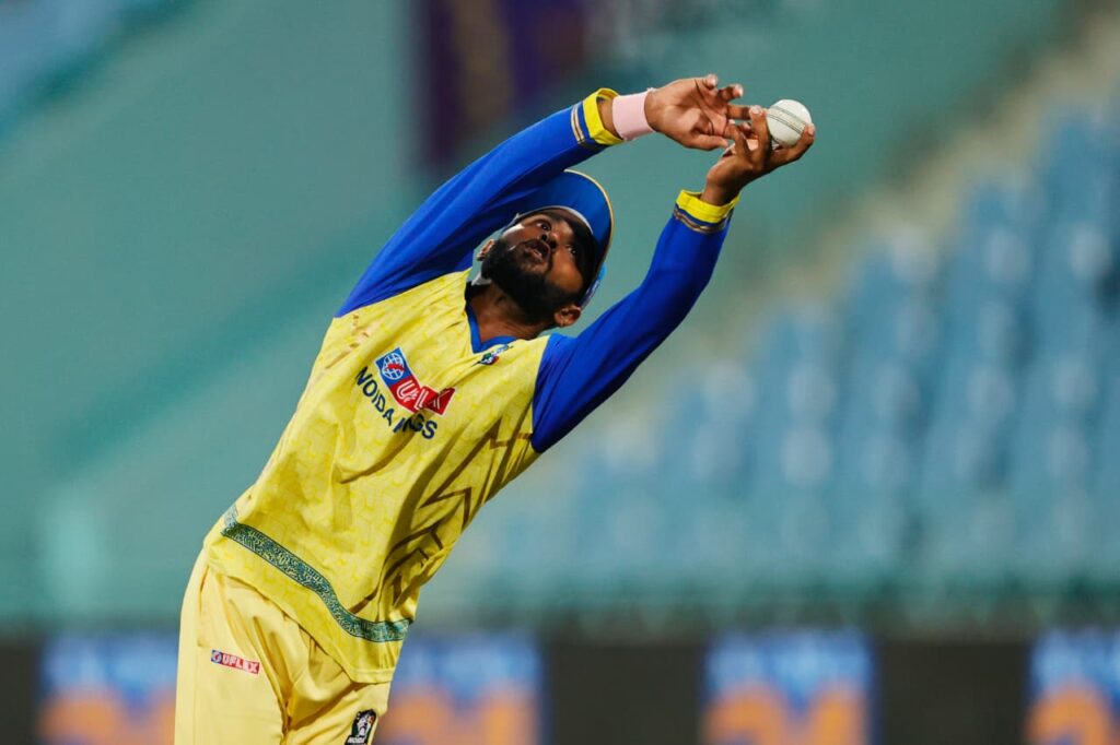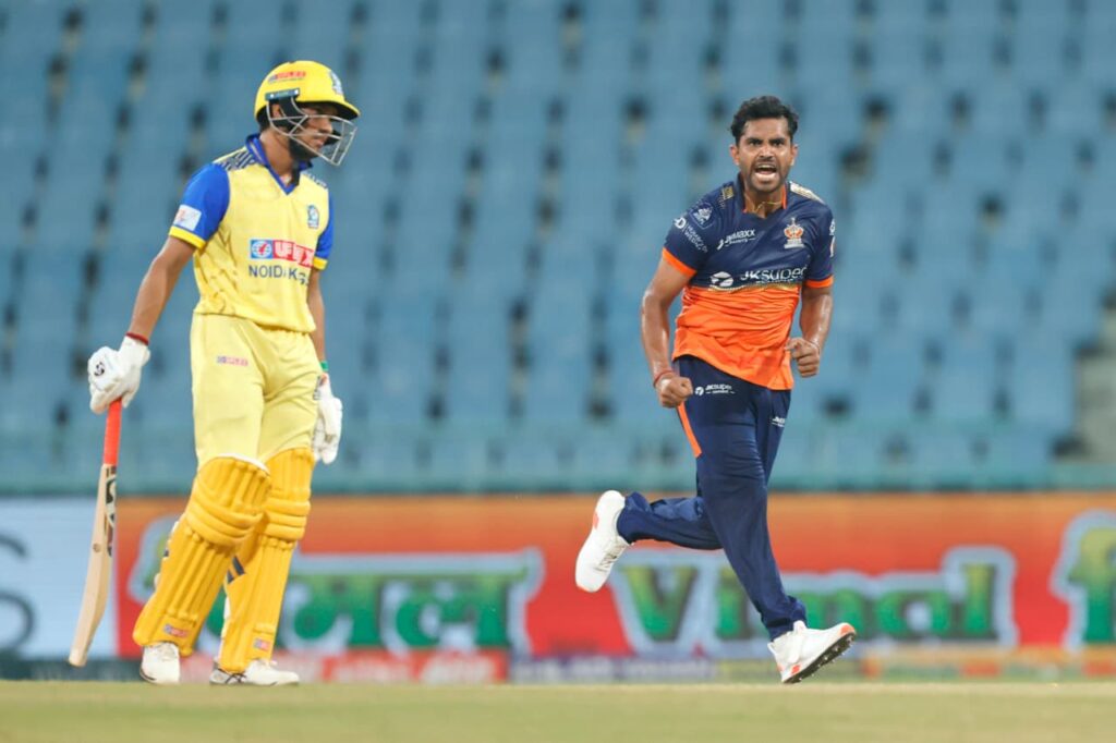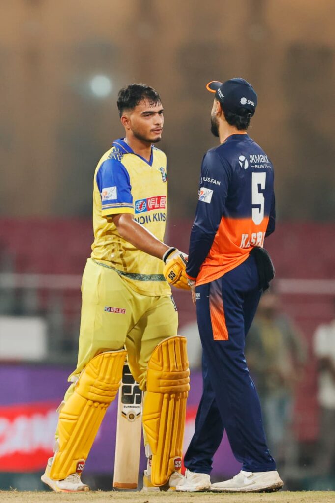 नोएडा किंग्स 154/6 (20 ओवर) – प्रंशात वीर 52, कर्ण शर्मा 34; शिवम मावी 4/39, कार्तिक यादव 1/14