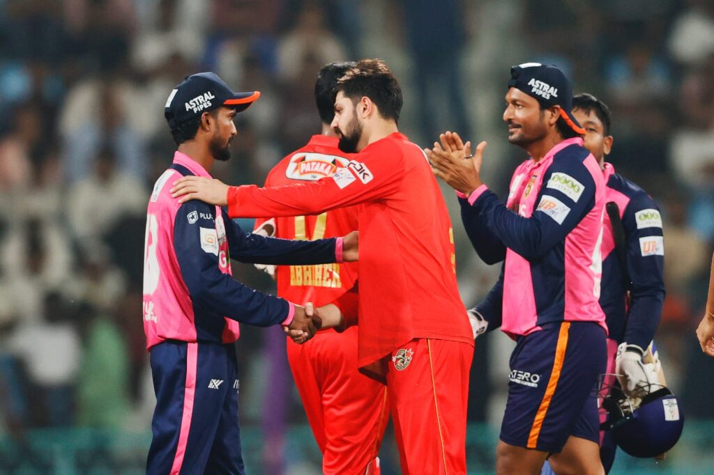 हालाँकि आदर्श का कैच आउट होते ही लय बिगड़ गई और रन गति धीमी हो गई। रिज़वी ने 75 रनों की विस्फोटक पारी खेली, लेकिन उनका विकेट गिरते ही कानपुर दबाव में आ गया। आख़िरी ओवर में टीम को 11 रन चाहिए थे। अभिषेक पांडेय ने प्रिंस यादव की गेंद पर छक्का लगाकर मैच लगभग कानपुर की झोली में डाल दिया। आख़िरी गेंद पर जीत के लिए सिर्फ 1 रन चाहिए था, लेकिन फ़ैज़ अहमद का शॉट सीधे फील्डर के हाथों में चला गया और मैच सुपर ओवर में पहुँच गया।