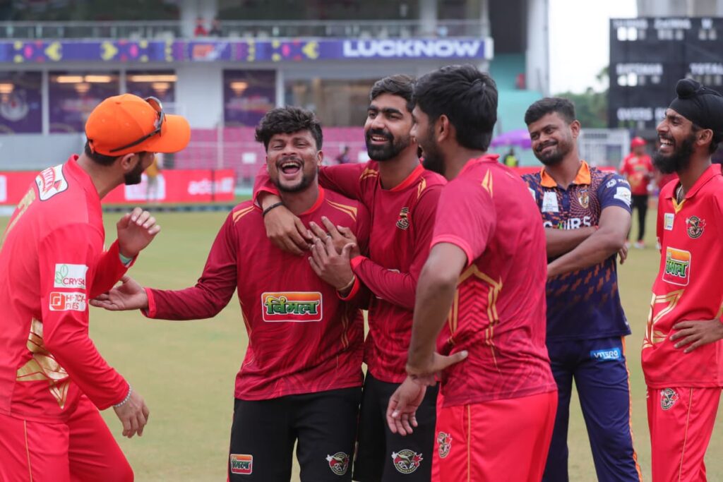 - गोर गोरखपुर लायंस – 141/7 (15 ओवर): प्रिंस यादव 40, सिद्धार्थ यादव 29; राहुल शर्मा 2/19, शुबहम मिश्रा 2/43